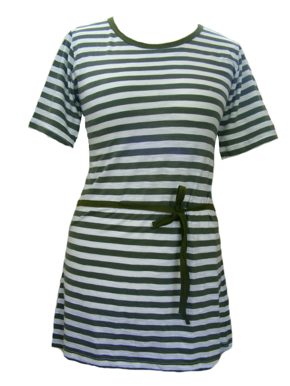 100% Cotton Classic White & Green Stripey Dress - Fair Trade