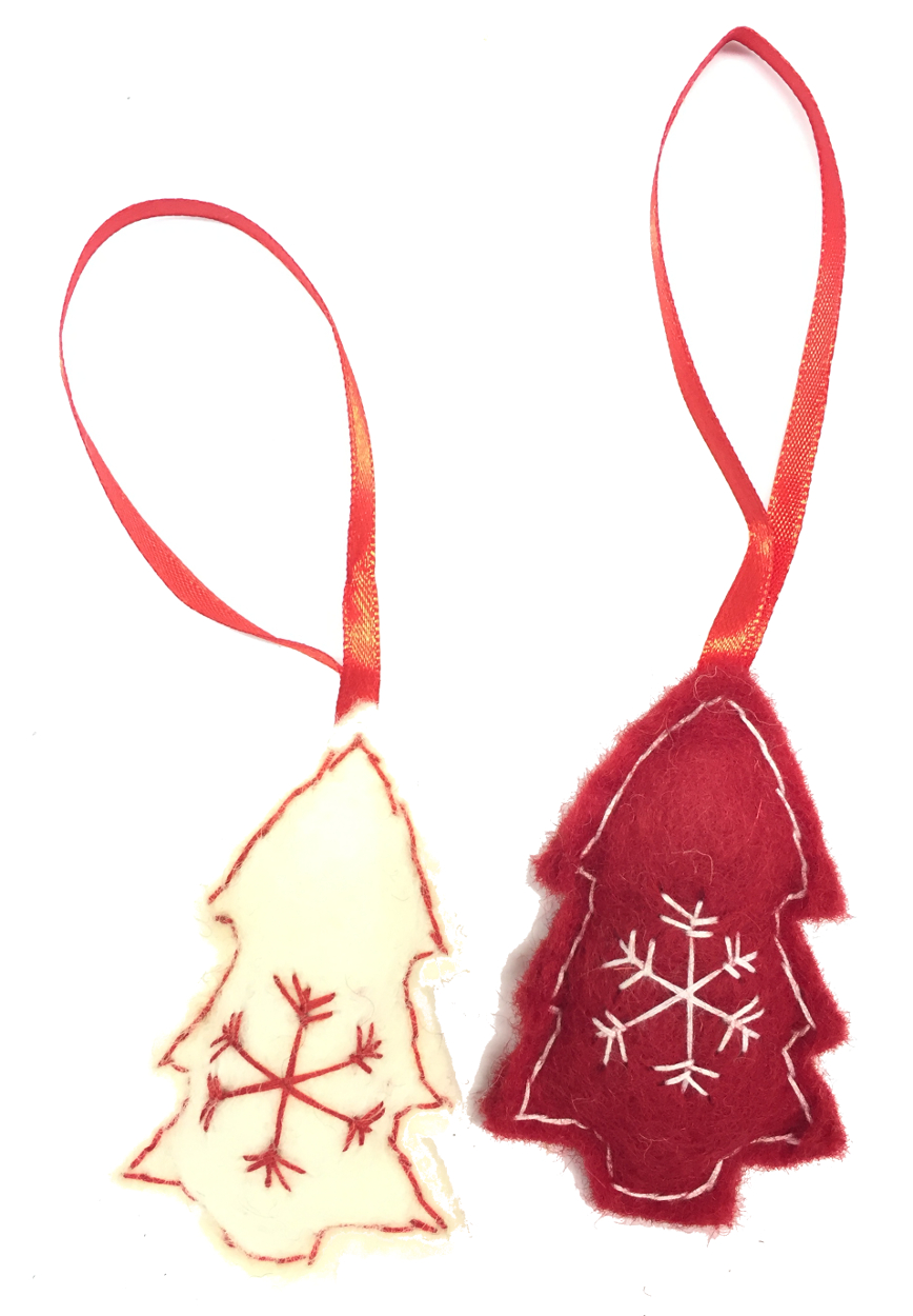 Fair Trade Felt Red & White Christmas Tree Decorations - Set of 2