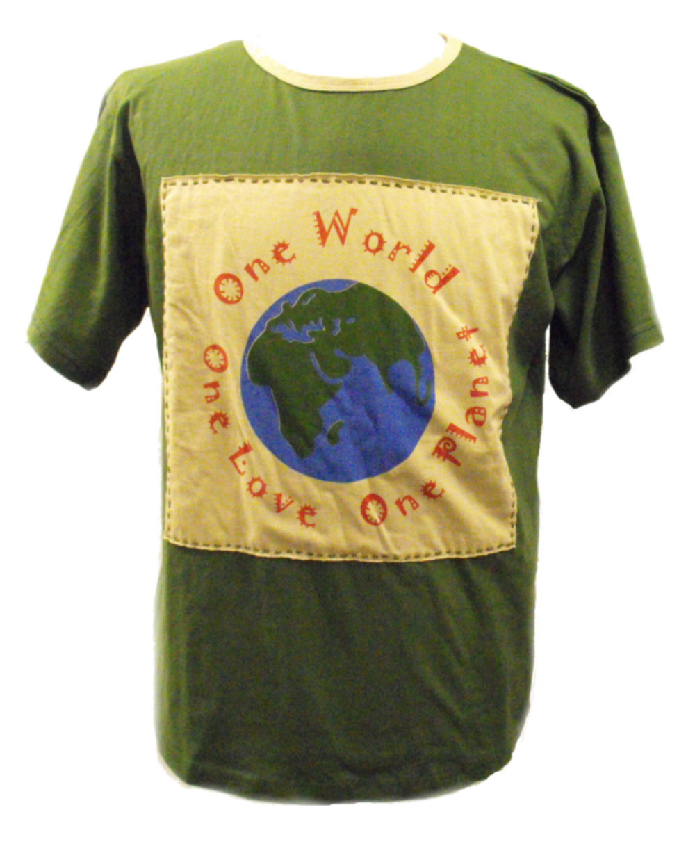 Fair Trade 100% Cotton Green One World One Love One Planet T Shirt