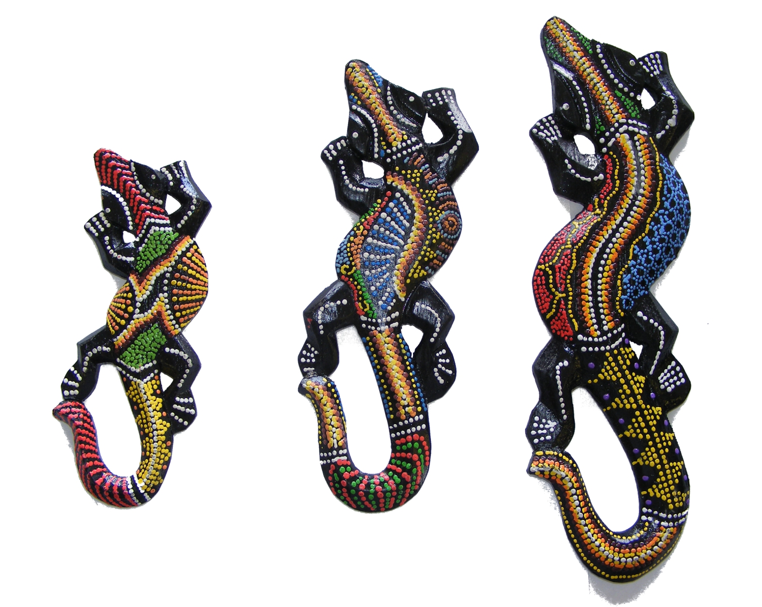 Set of 3 Colourful Hand Painted Wooden Balinese Geckos - Fair Trade
