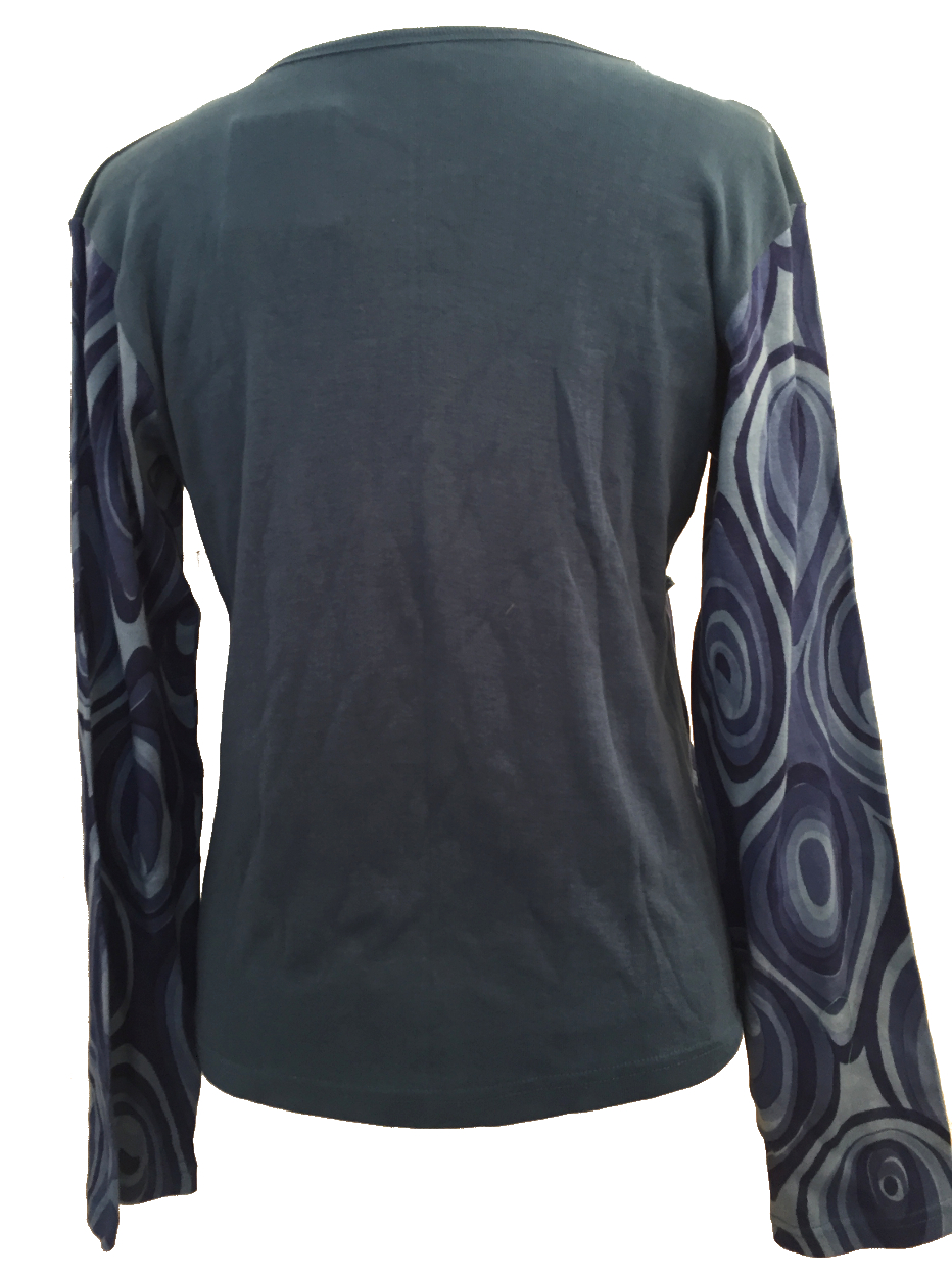 Fair Trade Blue Jersey Cotton Retro Spiral Ladies Long Sleeve Top
